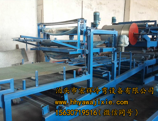 巖棉夾芯板設(shè)備能一次性復合成瓦楞型復合板,全套流水線由裝料開卷系統(tǒng)、成型系統(tǒng)、切斷裝置、復合系統(tǒng)(壓筋、涂膠、加溫、復合、卷邊、開槽、整邊、氣動、自動切斷)組成,整個過程由電腦控制,是生產(chǎn)工業(yè)廠房、倉庫等房面板和墻板不可缺少的設(shè)備。