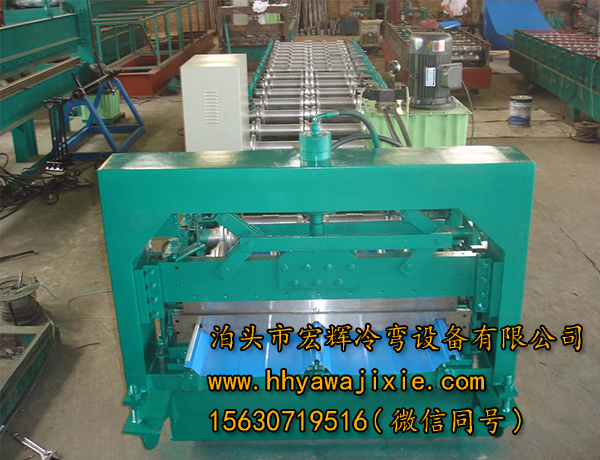 820角馳壓瓦機(jī)生產(chǎn)的各種屋面板、墻面板和普通的屋面板、墻面板相比具有更優(yōu)良的防滲漏性能,同時(shí)配合起拱機(jī)可制作無(wú)梁拱形屋頂。